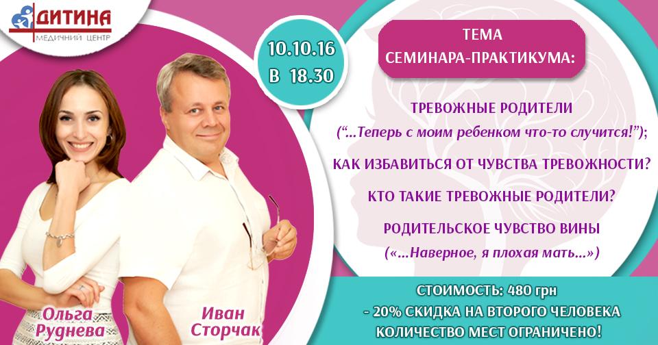 10 октября в 18:30 в детском медицинском центре «Дитина» состоится семинар-практикум на тему «Тревожность родителей», в рамках которого наши психологи расскажут: